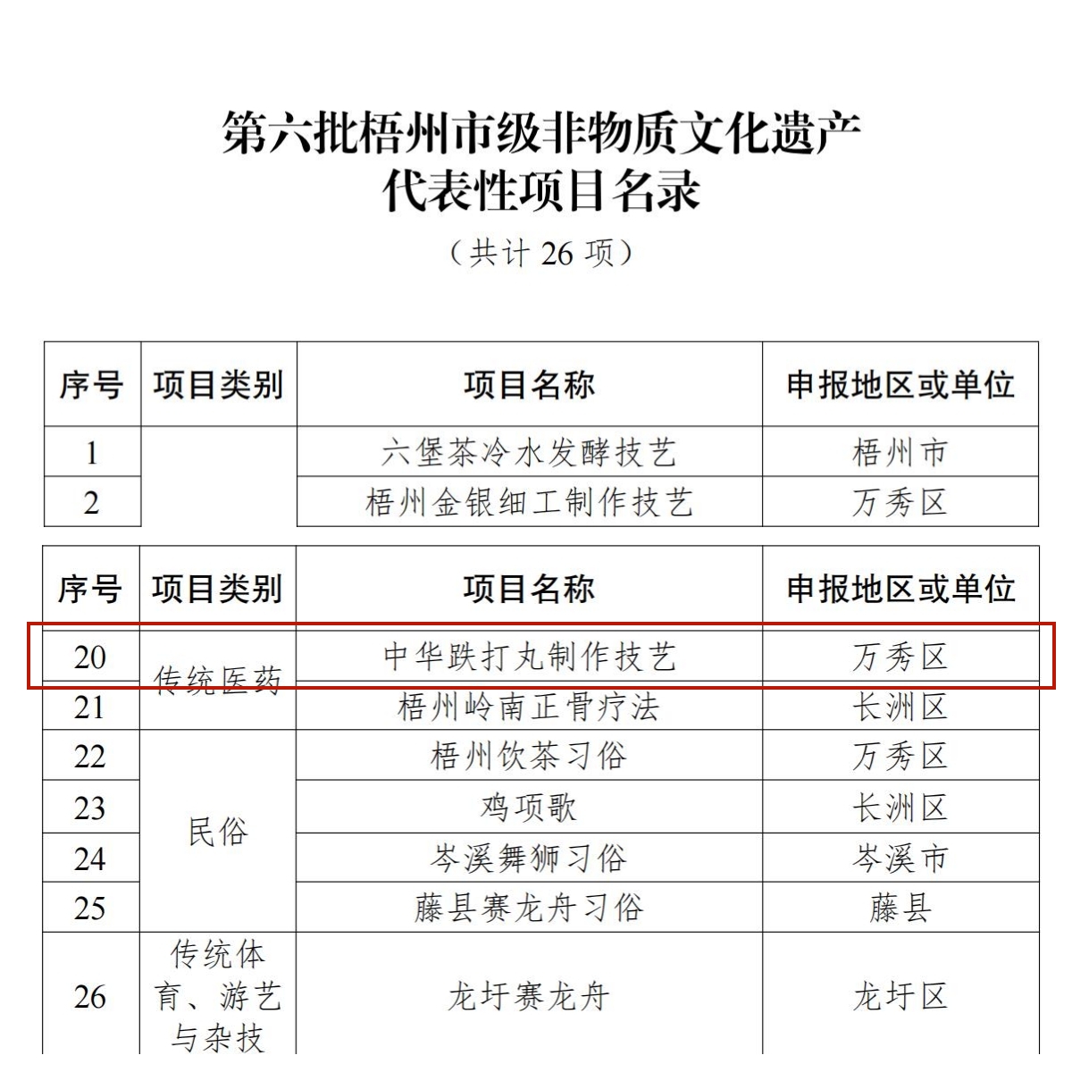 近日,梧州市人民政府公布了梧州市第六批非物質(zhì)文化遺產(chǎn)代表性項目名錄,梧州制藥的中華跌打丸制作技藝項目成功入選。