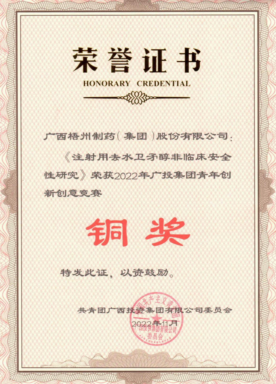 銳意創(chuàng)新展風(fēng)采 攜手并進向未來——梧州制藥獲得2022年廣投集團青年創(chuàng)新創(chuàng)意競賽銅獎