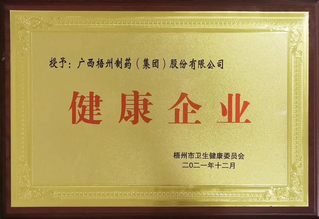 榜上有名丨梧州制藥喜獲 “自治區(qū)級健康企業(yè)”稱號