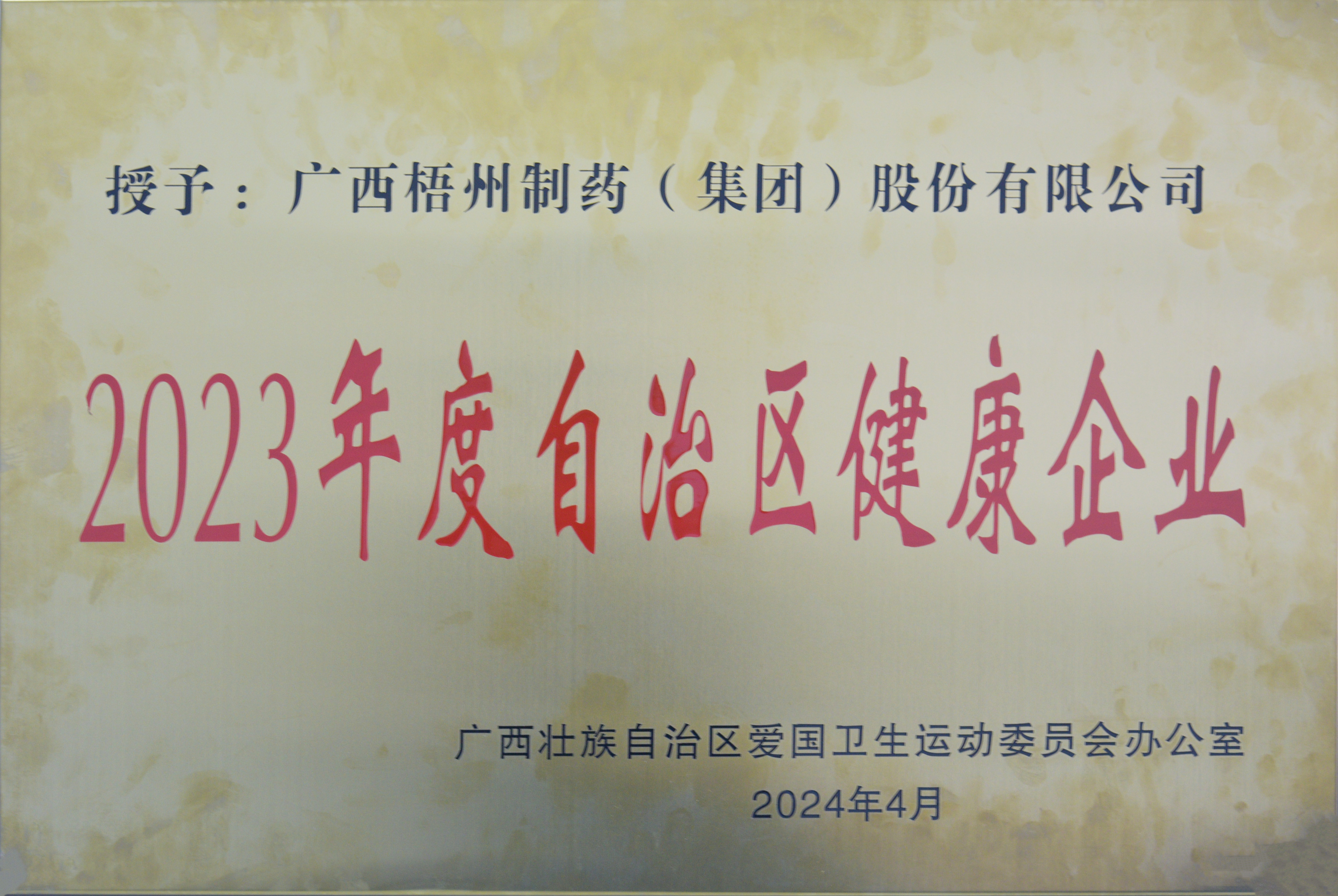廣西梧州制藥(集團)股份有限公司榮獲2023年度自治區(qū)健康企業(yè)
