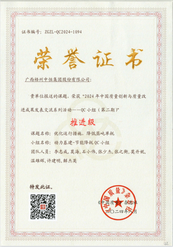 此次動(dòng)力基建QC小組在2024年全國(guó)QC小組成果發(fā)表交流活動(dòng)中斬獲“推進(jìn)級(jí)”稱(chēng)號(hào),是積極貫徹落實(shí)公司“節(jié)能、降耗、減污、增效”宗旨的具體體現(xiàn)。梧州制藥始終堅(jiān)持以綠色改造升級(jí)為重點(diǎn)、以技術(shù)創(chuàng)新為支撐,鼓勵(lì)職工立足崗位,擔(dān)當(dāng)企業(yè)發(fā)展的“有心人”,在促進(jìn)精細(xì)化管理、提升質(zhì)量和效益等方面,為公司發(fā)展出謀獻(xiàn)策,助力公司節(jié)能降耗穩(wěn)步推進(jìn)。
