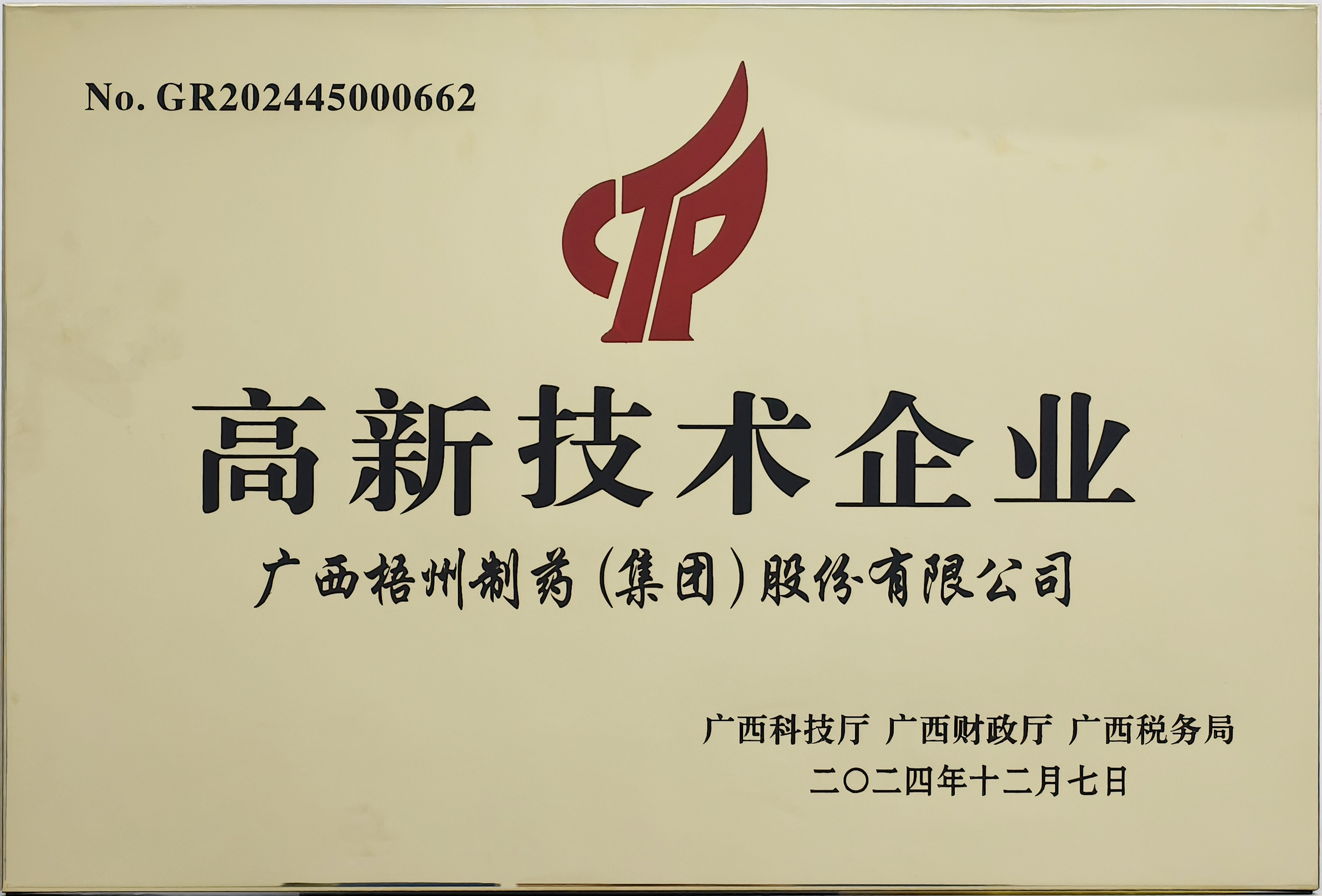 廣西梧州制藥(集團)股份有限公司榮獲高新技術(shù)企業(yè)