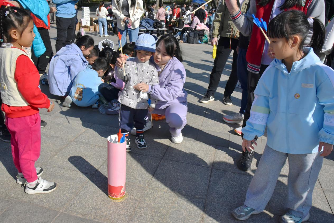 上午9時30分,活動正式拉開帷幕,一場場充滿趣味與溫情的親子游戲輪番上演?!爸樾腥f里”項目中,家長與孩子手持半圓槽拼接通道,小球滑落時共同默契重整,掌心相對間不僅傳遞著力量,更凝聚著親情;壺中“箭”寶環(huán)節(jié)融入傳統(tǒng)元素,家長們手把手帶領孩子瞄準投擲,每一次成功入壺都引發(fā)全場歡呼;“筷子夾乒乓球”項目磨練耐心技巧,孩子們模仿家長動作小心翼翼夾球,有的家庭還創(chuàng)意發(fā)明“接力夾球”玩法,現(xiàn)場加油聲、歡呼聲交織成群。