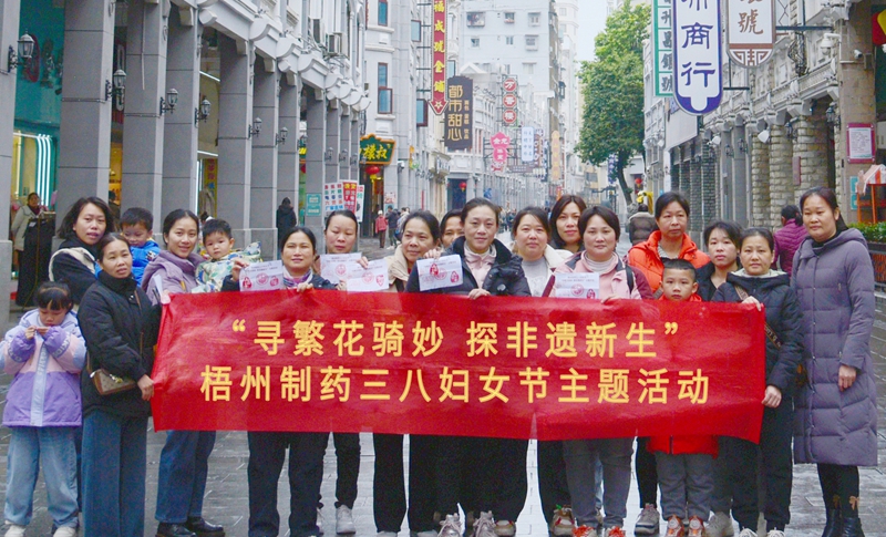 3月8日,為慶祝第115個(gè)“三八”國(guó)際勞動(dòng)?jì)D女節(jié),梧州制藥工會(huì)精心策劃的“尋繁花騎妙 探非遺新生”主題活動(dòng)在梧州騎樓城舉辦。此次活動(dòng)以“穿梭歷史長(zhǎng)河,探尋非遺魅力,邂逅健康與幸運(yùn)”為主線(xiàn),以騎樓城獨(dú)特的建筑風(fēng)貌與